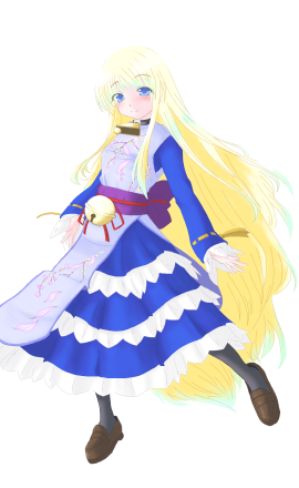 首にカウベル、腹あたりに鈴がついているが彼女は失声症のため、この二つでYES,NOを示すらしい。